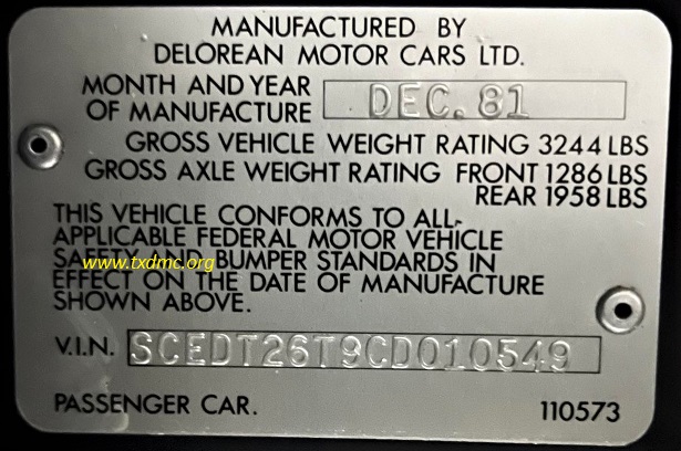 | | | ADDITIONAL INFORMATION / OUTSIDE LINKS: | | | | | | | | | | | | | | This DeLorean (10549) is not known to be associated with any other VINs. | | |