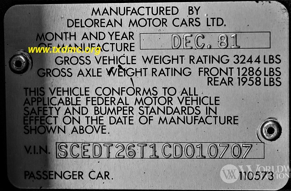| | | ADDITIONAL INFORMATION / OUTSIDE LINKS: | | | | DMC Museum Window Sticker available | | | | | | Lookup counts: | | | Web: | 381 | | | | Mobile: | 1 | | | | | | | | This DeLorean (10707) is not known to be associated with any other VINs. | | |