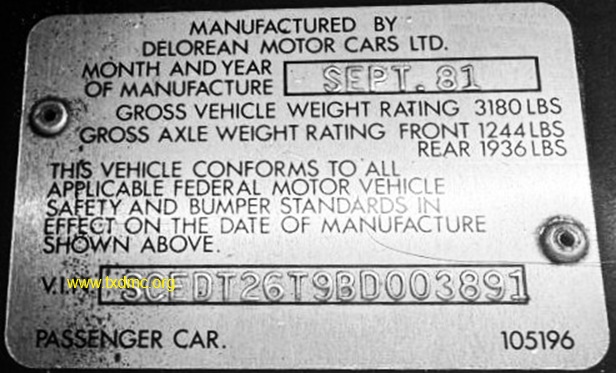 | | | ADDITIONAL INFORMATION / OUTSIDE LINKS: | | | | | | | | | | | | | | This DeLorean (3891) is not known to be associated with any other VINs. | | |