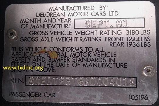 | | | ADDITIONAL INFORMATION / OUTSIDE LINKS: | | | | | | | | | | | | | | This DeLorean (4013) is not known to be associated with any other VINs. | | |