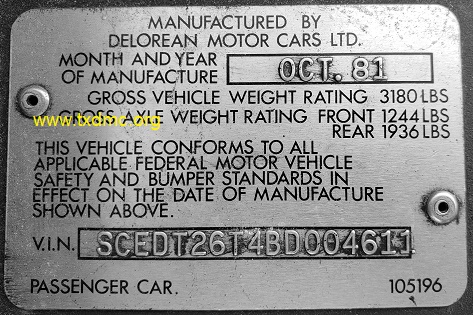 | | | ADDITIONAL INFORMATION / OUTSIDE LINKS: | | | | | | | | | | | | | | This DeLorean (4611) is not known to be associated with any other VINs. | | |