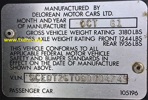 | | | ADDITIONAL INFORMATION / OUTSIDE LINKS: | | | | | | | | | | | | | | This DeLorean (4749) is not known to be associated with any other VINs. | | |