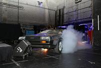 The DeLorean, patiently waiting all day Friday for the big event to begin.