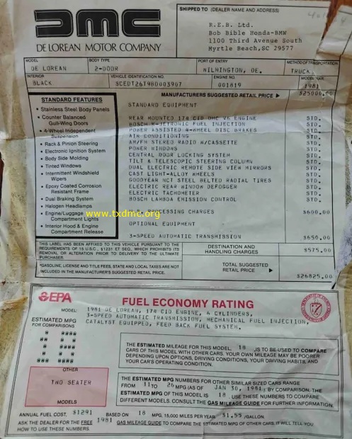 | |  | Is this your VIN? Join the original DeLorean Owners Directory to make updates yourself. | | |  | Get the World's only DeLorean VIN Mobile App from the Google Play Store. |